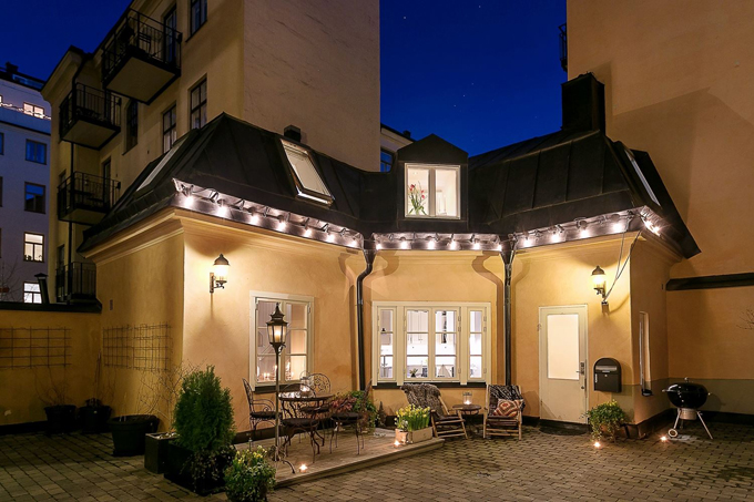 Уютный домик в 66 кв. м. находится в самом центре Стокгольма, в районе Kungsholmen. Он построен в 1884 году и много лет использовался в качестве конюшни. Сейчас дом перестроен в жилой. В доме три комнаты и просторная кухня, а также собственный садик и даже место для гриля.
