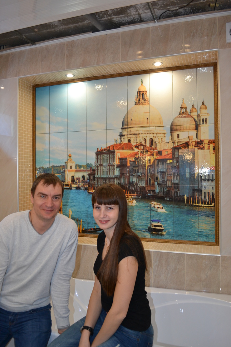 Наташа, моя жена, увидела в журнале с интерьерами панно из керамической плитки в ванной и загорелась желанием осуществить нечто подобное в наших ванных комнатах. Выбор керамической плитки в магазинах огромный, есть даже уже готовые панно, но мы решили, что хотим нечто особенное. К тому же по размеру из готовых решений ничего не подходило. Решили, что нужно напечатать на плитке свой рисунок.