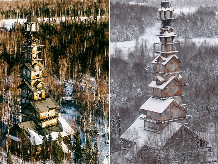 В окрестностях небольшого городка Willow (Аляска) находится дом, напоминающий скорее избушку из сказки-страшилки, нежели жилую постройку. При взгляде на 12 этажей, возведенных друг над другом по убыванию, создается впечатление, что они вот-вот разрушатся как карточный домик.