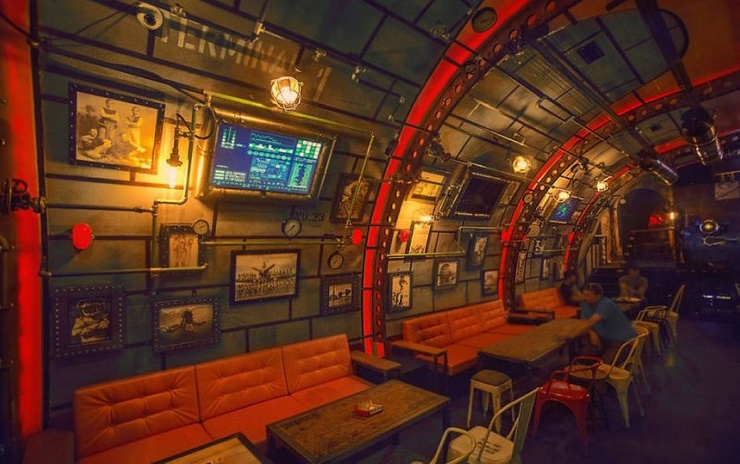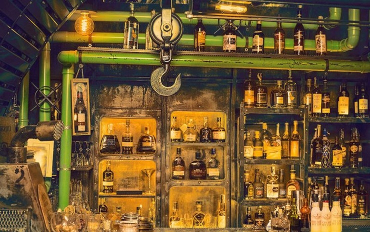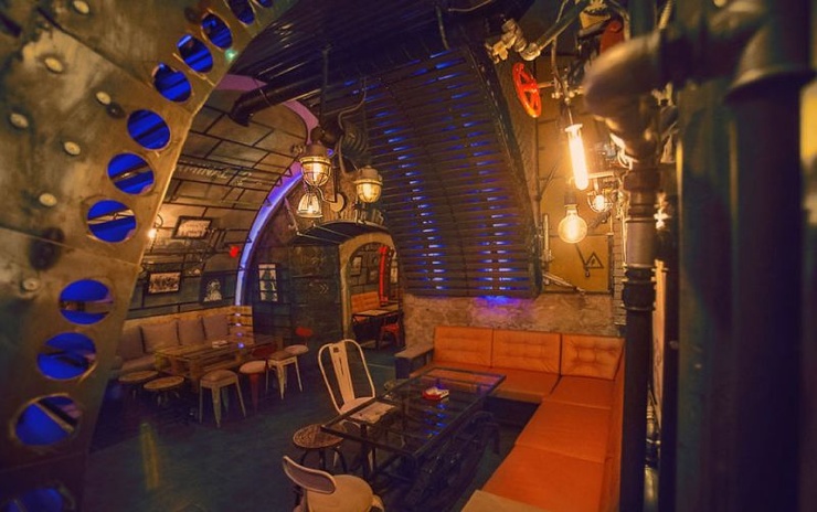 Дизайн-студия 6th Sense реализовала проект заведения на протяжении года, собирая по всей стране ненужный хлам, чтобы воссоздать интерьер подводной лодки. Ром - козырная карта заведения, и тут можно попробовать около сотни коктейлей с этим напитком.