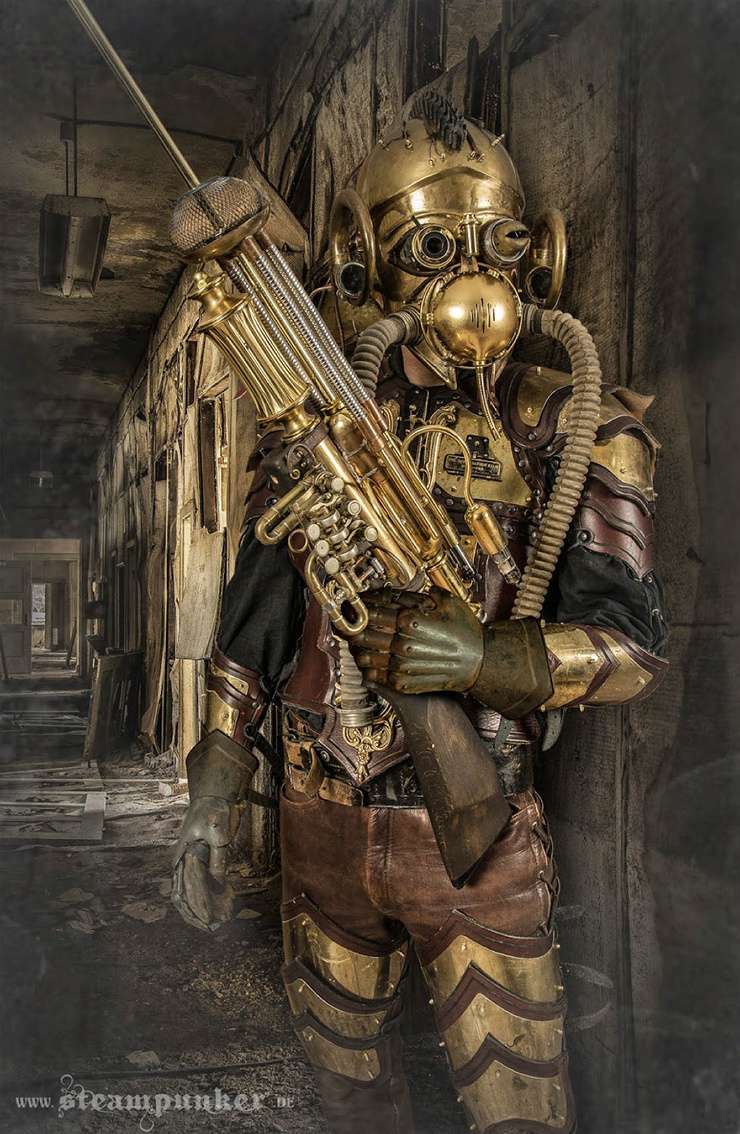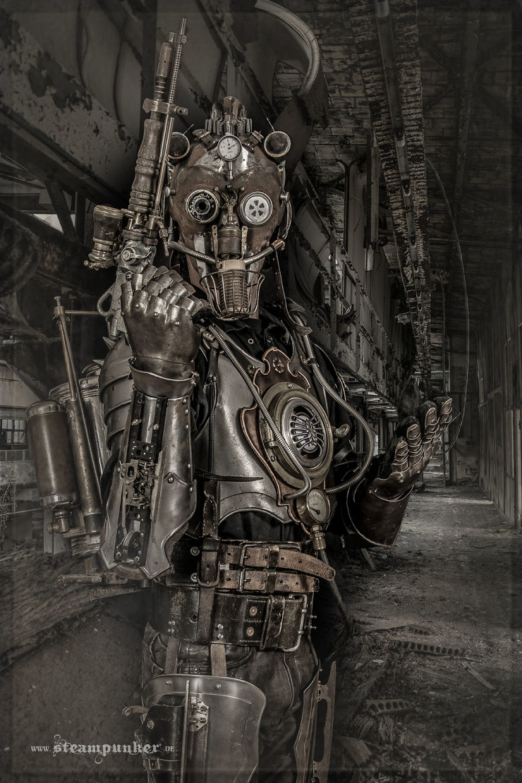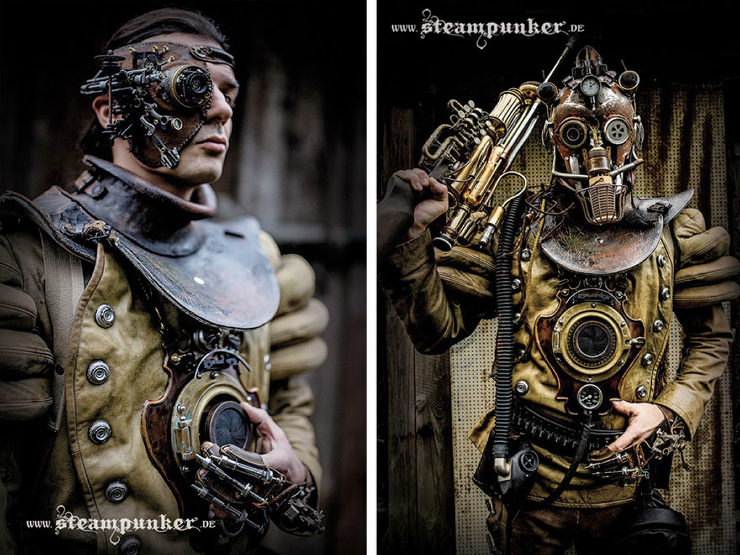 При создании таких костюмов в дело идут только подлинные материалы, такие как старая кожа, сталь, латунь, медь, дерево и стекло. Почти ничего не клеится, большинство частей являются обратимыми и скреплены винтами.