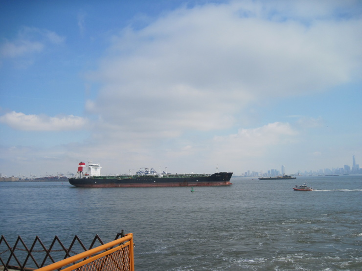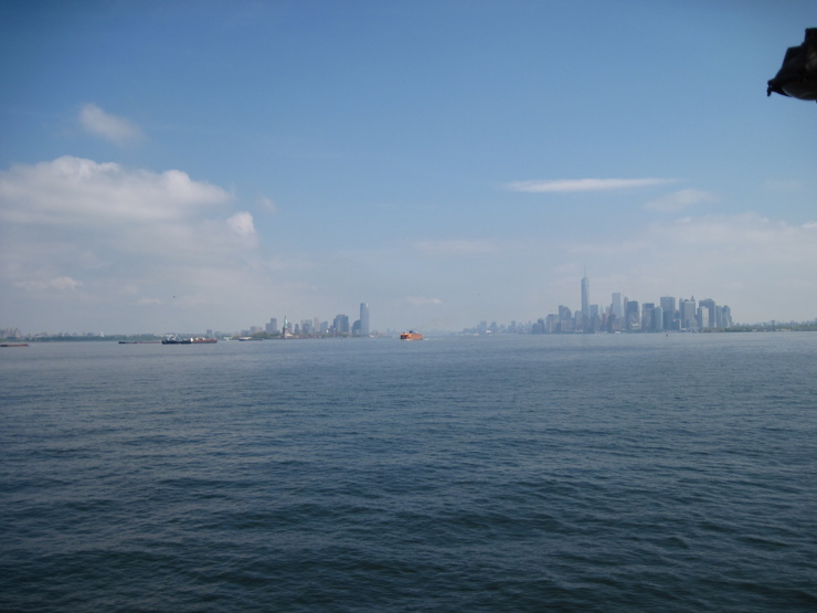 В пути. На заднем плане видны высотные здания Манхэттена.