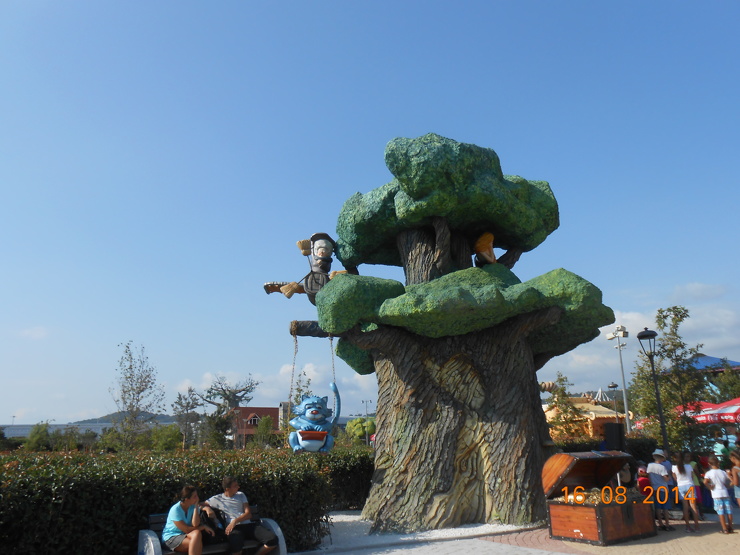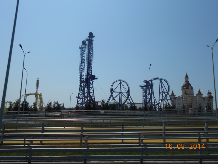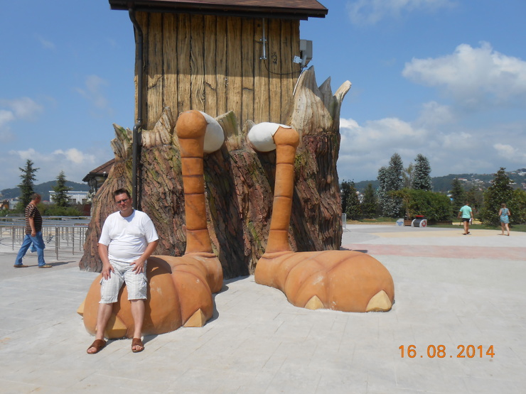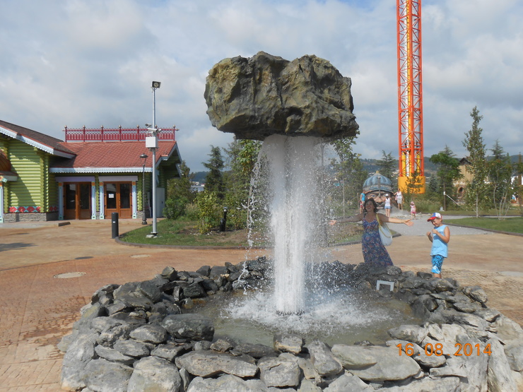 Ну а потом, пошли пешочком до Сочи-парка (парк развлечений). Если помните, я Вам говорила - сохраняйте билеты на канатную дорогу в Розе-хутор...тут они и пригодились (а может в этом году и отменили сию халяву....ну спросить-то можно, вдруг действует). Сначала нас встретил красавец-отель "Богатырь" - сказочный замок с кондиционером внутри.