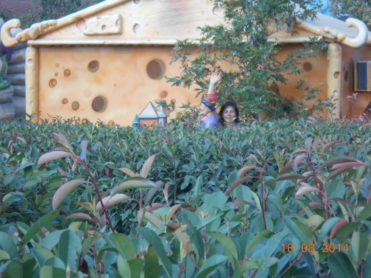В парке, конечно,здорово, но есть минусы - очень жарко, особо негде спрятаться. Хотя часто встречались ларечки с прохладительными напитками, но их нам не хватило, пришлось еще сходить в ресторан, в котором был кондиционер - там наш детёныш слегка отживел. (Только таких страждущих как мы было много - пришлось подождать.)