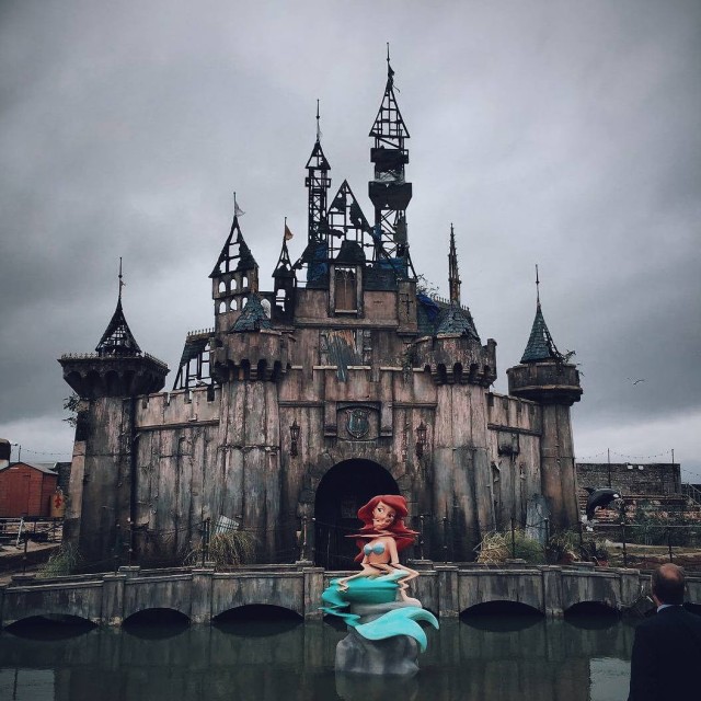 В отличие от яркого и сказочного «Диснейленда», здесь все выглядит мрачно и отражает суровые реалии современного мира. В парке выставлены работы современных художников, включая Дэмьена Хёрста и Дженни Хольцера, а еще в нем пройдут музыкальные выступления и арт-перфомансы. Здесь есть полуразрушенный замок Золушки и сама Золушка, ставшая частью экспозиции, напоминающей нам о трагической гибели принцессы Дианы. Вход в парк Бэнкси, прославившегося своими остросоциальными граффити на улицах Лондона и других городов, будет стоить 3 фунта (примерно 4,5 доллара). Проработает парк до 27 сентября.