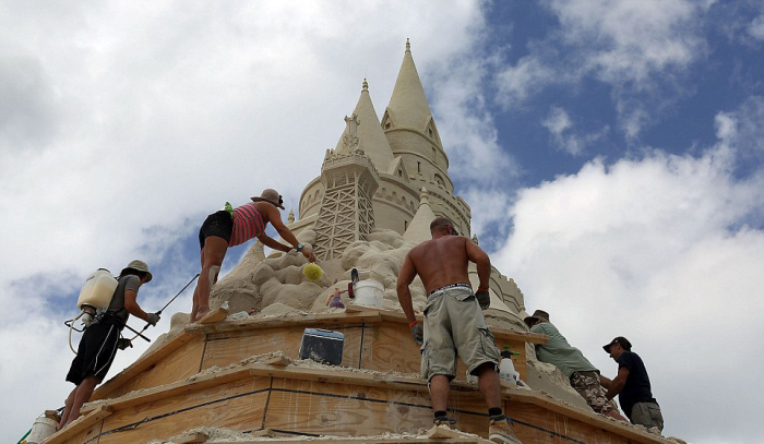 На пляже Virginia Key Beach, штат Флорида, США, команда из 12 скульпторов строит самый высокий в мире замок из песка. Для создания гигантского сооружения, которое планируют закончить в понедельник, 26 октября, понадобилось 1800 тонн песка. Работы будут закончены в двухнедельный срок, а руководит проектом известный скульптор Тед Сиберт...