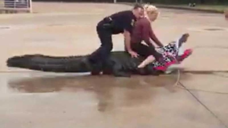 Техасские барышни настолько суровы, что способны усмирить огромного аллигатора. Рептилия весом больше 360 кг и соответствующего размера, впоследствии получившая кличку Годзилла, была обнаружена на площади торгового центра в Шугар-Ленде, неподалеку от Хьюстона, штат Техас.