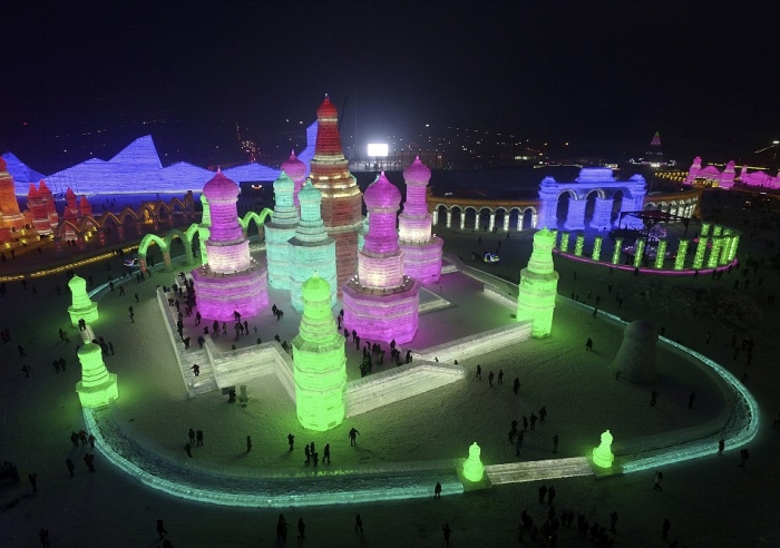 Все основные сооружения уже построены, и местные жители гуляют среди величественных замков, высоких башен и причудливых фигур, сделанных из снега и льда. Особенно ярко ледовый город выглядит в ночное время, когда его подсвечивают тысячи огней. Фото ледовых дворцов и других достопримечательностей Харбинского международного фестиваля льда и снега ждут вас далее.