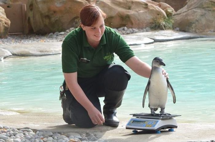 Пингвины, живущие в зоопарке Лондона, очень любят взвешиваться на весах..