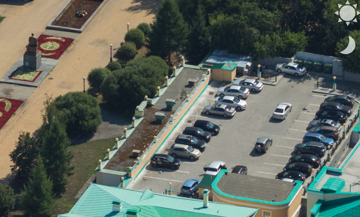 Вы можете найти интересные вам объекты и рассмотреть их в деталях. Вот, например, парковка у резиденции губернатора.