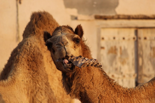 Ирак. Верблюд жует картонную кассету из-под яиц