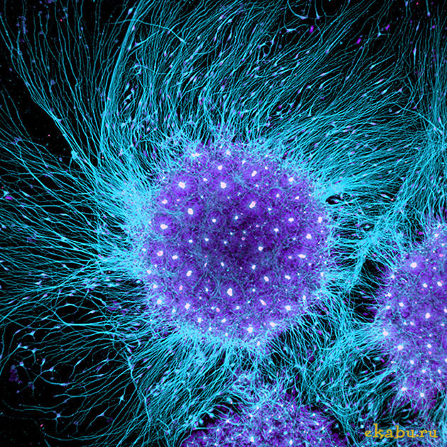 Клетки нашего мозга с огромным количеством отростков-нейронов. Сравните с фото
