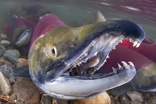 Когда лосось идет на нерест,то у нее вырастает уродливый нос-клюв-хобот