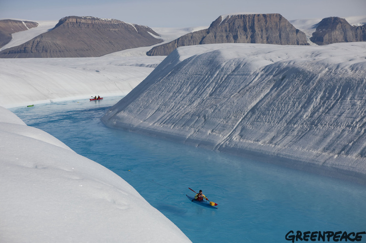 Настоящий рай в Гренландии для увлеченных каякингом. При таянии ледника Петермана области, расположенные ниже, заполняются кристально чистой водой с голубоватым оттенком. Явление это сезонное, и каждый раз река меняет свою форму. Синяя река была обнаружена тремя учеными, которые проводили исследования по вопросам проблемы глобального потепления. Река стала привлекать своим величием огромное число путешественников.