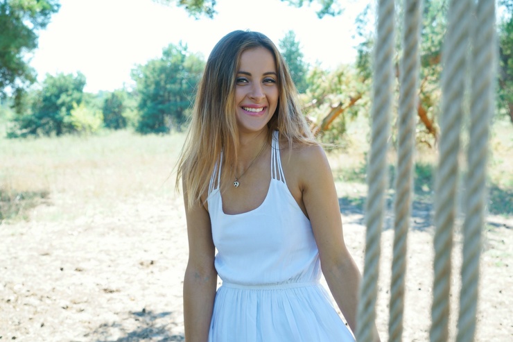Кареглазая модель в белом платье, на фото разрешением 7600 на 5300 пкс и голубоглазая моделька из Латвии, совсем без одежды