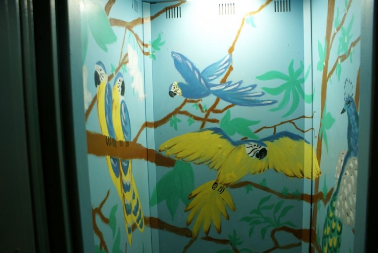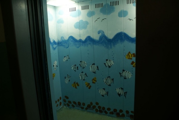 Жители дома на улице Решетникова, 14, заходя в лифты, не кривятся от запахов и исписанных нецензурными словами стен, а улыбаются: у них в подъёмниках светло и красиво. Недавно жильцы сами раскрасили грузовой и пассажирский лифты и вход в подъезд.