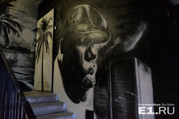 А в подъезде на ул. Новгородцевой 17 б один из жильцов сделал ремонт совместно с ТСЖ, а потом заказал художнику вот такую картину: