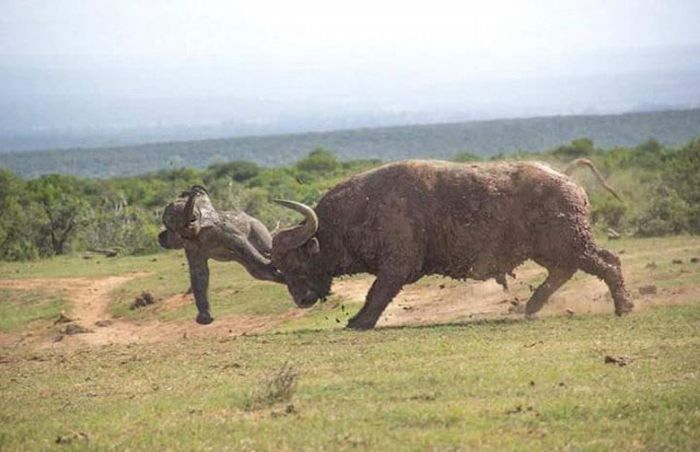 Этот беспечный буйвол атаковал слоненка, вероятно, не подозревая, что его мать может оказаться где-нибудь поблизости, но именно так и произошло...