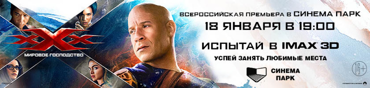 Премьера «Три икса. Мировое господство» в формате IMAX 3D в кинотеатре СИНЕМА ПАРК.