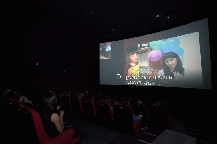 Представьте: гаснет свет, все затихают, и вдруг на экране появляется видеоролик*, и он – не анонс предстоящих премьер, не реклама известных брендов, это совершенно другая история, посвященная только одному человеку: красивый видеоряд с тёплыми словами и пожеланиями, фотографиями и подобранной музыкой… И пусть завидует весь зрительный зал – Ваше самое искреннее поздравление не останется незамеченным, а самое оригинальное признание в любви точно не будет безответным!