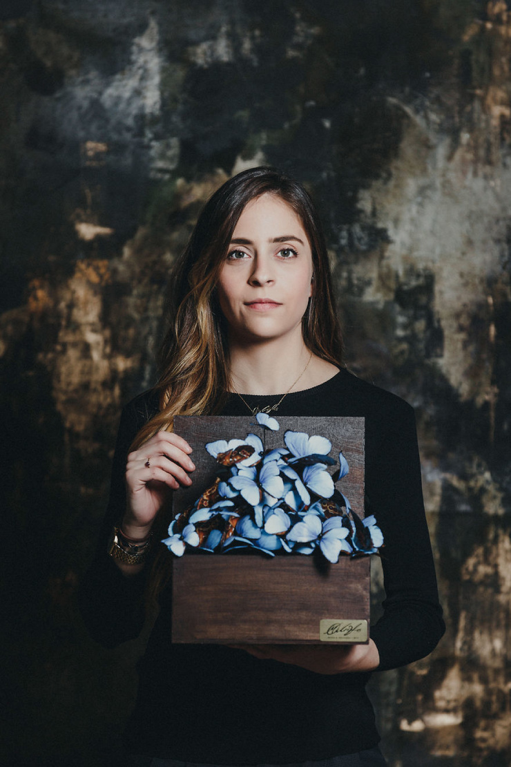 «В декабре прошлого года я открыла собственную студию в моем родном городе Ларнака на Кипре. У меня возникла идея использовать бабочек как украшение для новой концептуальной витрины в память о бабушке, дедушке и отце. Это был способ сохранить их наследие. Если бы не они, я бы никогда не достигла того, что у меня есть сейчас»