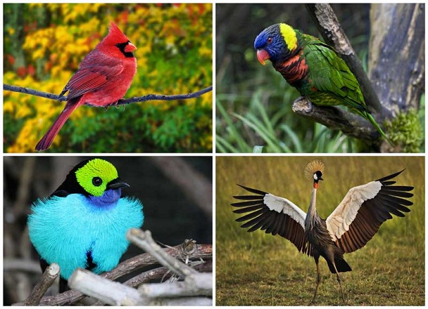 Единственная птица из этого списка, которая была одомашнена человеком. Отличительной особенностью самца является сильное развитие верхних кроющих перьев, который часто принимают за хвост. К павлинам трепетно относятся на Западе, их почитают на Востоке. В индийской мифологии, когда две ипостасти бога Вишну – Кришна и Радха — танцуют и забавляются в вечной радости любви, на них смотрят павлины.