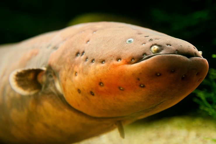 Благодаря наличию специальных органов, электрический угорь способен генерировать электричество. Сила заряда может составлять 600 Вольт – этого достаточно, чтобы зажечь десять 60-ваттных лампочек. Или убить человека.