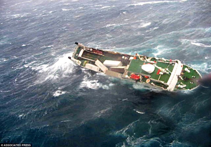 Грузовое судно Porvenir I терпит крушение у берегов Чили, 2005 год. Троих членов экипажа, которые упали за борт, спасти не удалось.