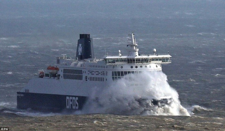 Паром DFDS, попавший в шторм «Imogen» у берегов Великобритании, 2016 год.