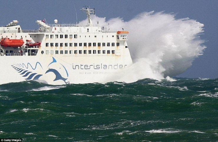 Паром Kaitaki попал в шторм по пути из гавани Веллингтон в Пиктон в 2006 году.