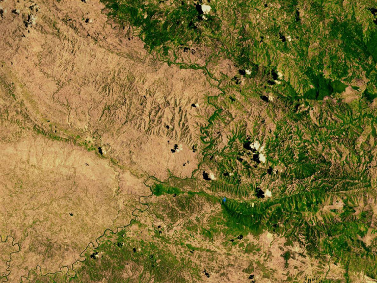 Этот снимок, сделанный с борта Международной космической станции, показывает район итальянского города Торино и французского города Лион. Между ними естественным разделом пролегли Альпы, по верхушкам которых пролегла государственная граница. Альпы в общей сложности являются естественной границей для восьми стран: Франции, Монако, Италии, Швейцарии, Лихтенштейна, Германии, Австрии и Словении.