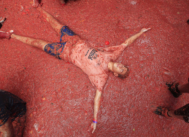 После этой битвы битвы стены домов в округе становятся красными, а томатная жижа на улицах доходит до щиколоток. (Фото Pablo Blazquez Dominguez):