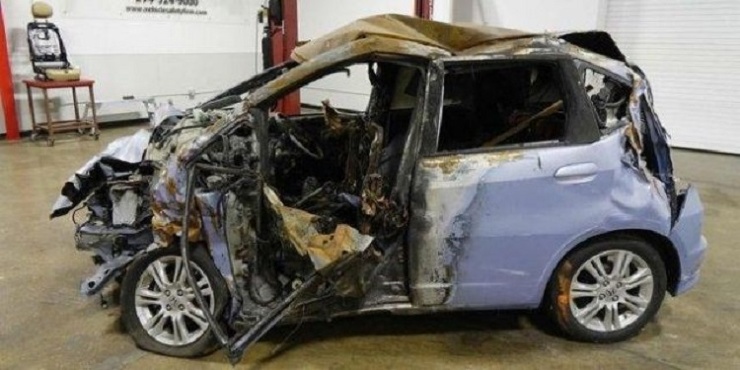 Автомобиль Honda Fit 2010 года выпуска будучи почти новым попал под град. Это был гарантийный случай и крышу решили не восстанавливать, а поменять по гарантии. В 2013 году супруги Сибачан попали в аварию на этом авто и серьезно пострадали, так как в момент столкновения крыша оторвалась.