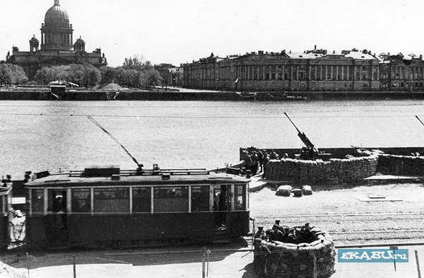 Далее монтаж фотографий Ленинграда в мирное и военное время: