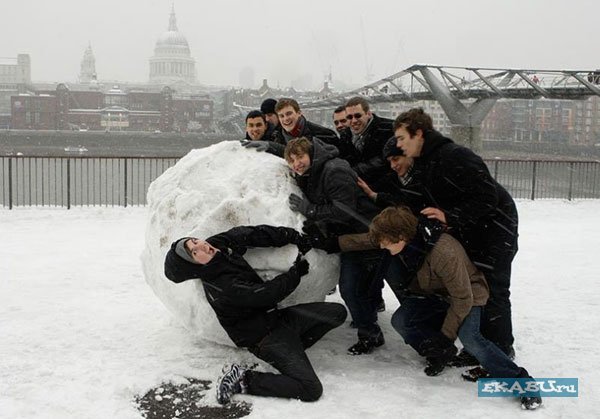 В Лондоне выпало см 20-25 снега, народ тут офигел, говорят первый раз за 18 лет. В связи с этим общественный транспорт не ходит, на авто тоже передвигаться нереально, дороги тут не чистят - техники нет, и соль не сыплют почти - (видимо соли тоже нет). Но зато красиво и весело: