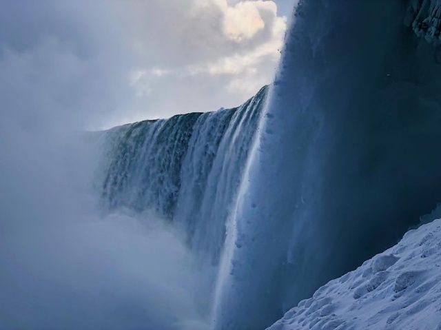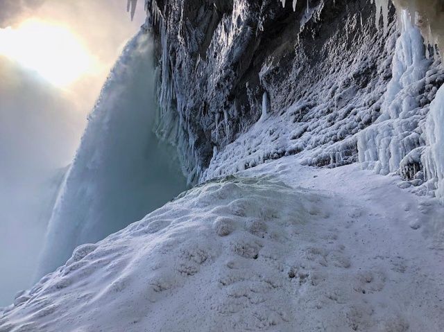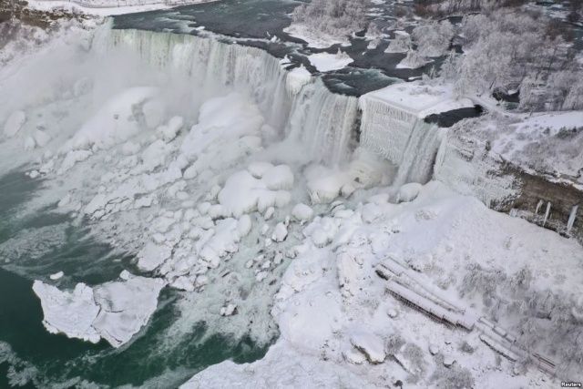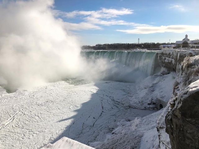 Туристы вовсю делятся фотографиями редкого природного явления - частично замершим Ниагарским водопадом...
