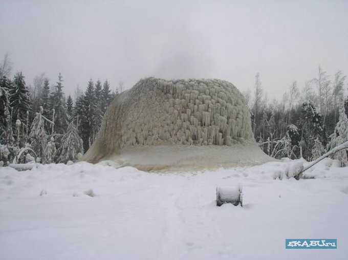 пару лет назад видел в районе белоярки гараздо более интересную ледышечку заместо водонапорной башни, таяля она до конца мая, а высотой была с эту самую водонапорку, кто знает что такое могет представить
