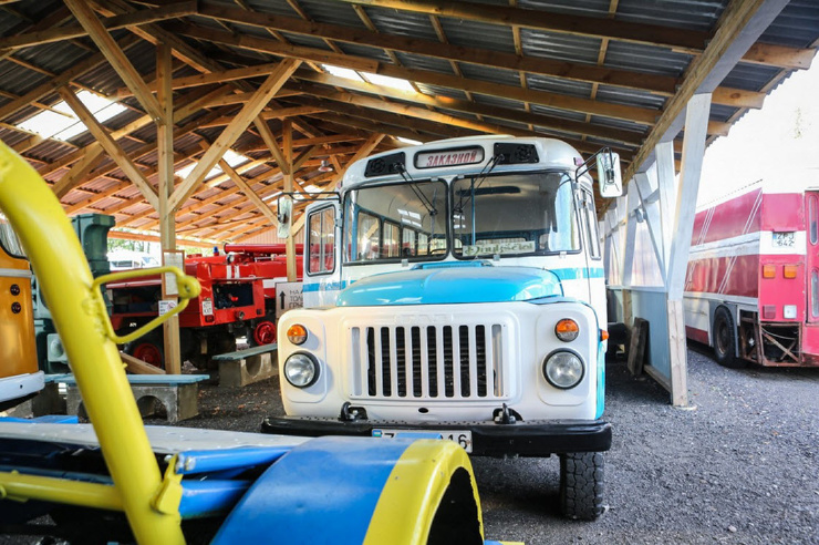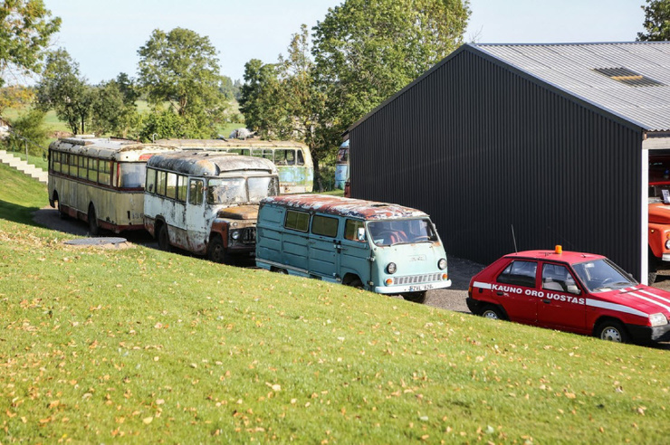 4. Не все транспортные средства помещаются в ангар – часть стоит во дворе под открытым небом. Во дворе вы найдете старые пожарные машины, милицейские авто и скорые, а также сельскохозяйственную и строительную технику, а также последний автобус марки “Икарус” в Литве, который еще может ездить.