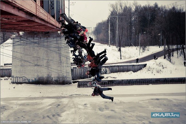 Группа ребят решила встретить весну с позитивом. И совершить вот такой вот групповой прыжок 22-ух метрового моста. Все прошло действительно позитивно и никто не пострадал) А главное - получились шикарные фото.