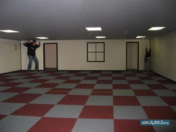Эта комната построена таким образом, что наблюдателю кажется будто задняя стена перпендикулярна боковым.