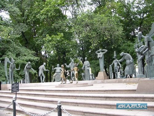 15-фигурная композиция установлена в Москве в восточной части сквера на Болотной площади.