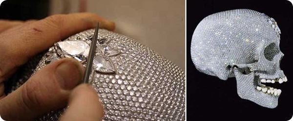 Для начала Дэмиен взял череп 18 века, рядом можно увидеть один из центральных бриллиантов