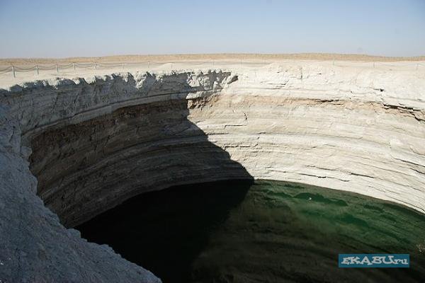Происхождение этого завораживающего зрелища весьма прозаично: в 1971 году здесь бурили разведочную скважину на газ и наткнулись на подземную каверну. Буровая вышка со всем оборудованием и транспортом провалилась. Люди, слава богу, не пострадали. Из техногенного кратера пошел природный газ. Чтобы не травились люди и скот, газ подожгли. С тех пор, вот уже 37 лет, горят негасимые факелы. Сколько с тех пор сгорело миллиардов кубометров ценнейшего природного сырья, не знает никто.