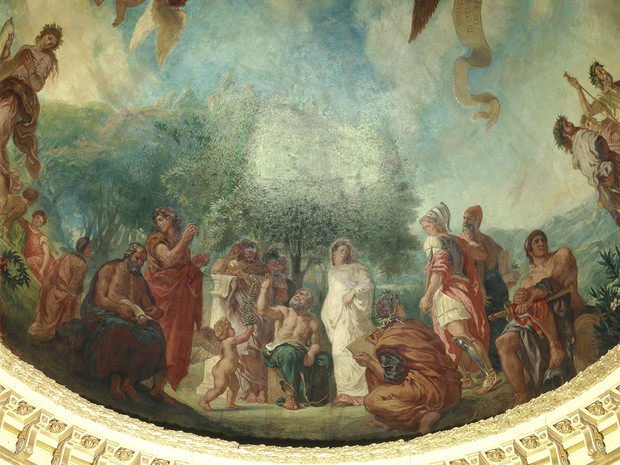 Купол сенатской библиотеки, деталь. Лелизе или Данте и духи великих людей: Александр, Аристотель, Апель, Аспазия, Алкивиад и Сократ. Делакруа Эжен (1798-1863), Люксембургский дворец
