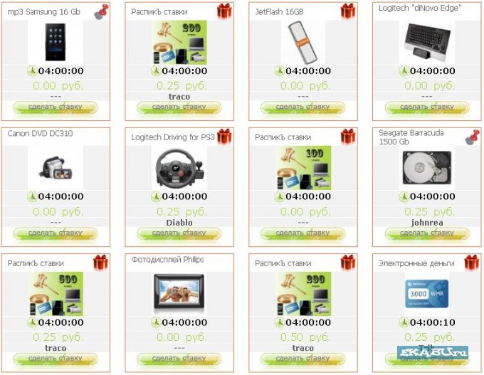 Возможность сделать ставку платная, стоит всего 5 рублей. Победителем считается пользователь, сделавший последнюю ставку. В итоге за вычетом аукционной цены и платы за ставки победитель получает товар с экономией 90% от рыночной стоимости!
