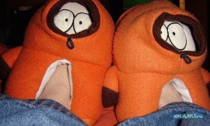 Коллекция необычных домашних тапочек. По моему очень прикольно и здорово. Мне с Кенни очень понравились.