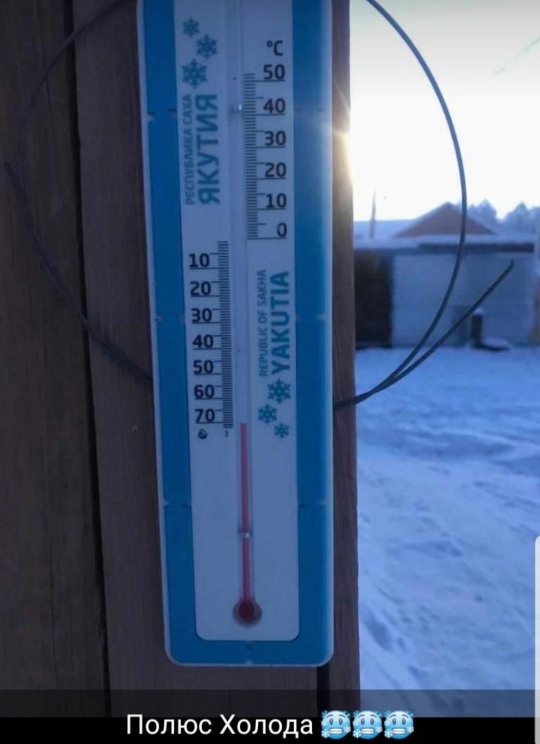 Оймякон — село на востоке республики Якутия. Это один из «полюсов холода» планеты — самое суровое место, где проживают люди. Температура зимой опускается там до минус 50–60 градусов. Абсолютный официально зафиксированный минимум температуры в Оймяконе составляет –64,3 °C. Но, говорят, что зимой 1938 года в посёлке было –77,8 °С.