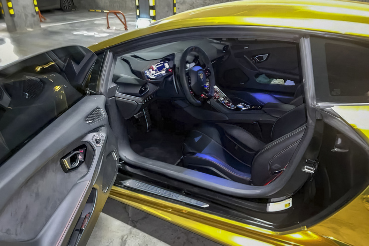 По словам продавца, «золотой» Huracan находится в идеальном состоянии. Полтора месяца назад он проходил плановое сезонное техобслуживание, также недавно были установлены новые тормоза стоимостью более двух миллионов рублей. Среди особенностей экземпляра — стеклянная крышка вместо заглушки сзади и кожаные сиденья вместо обитых алькантарой.