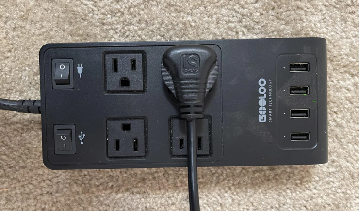 3. Сетевой фильтр, в котором одновременно можно использовать только две угловые вилки.