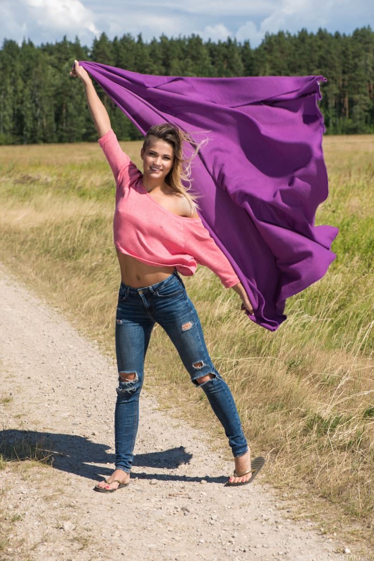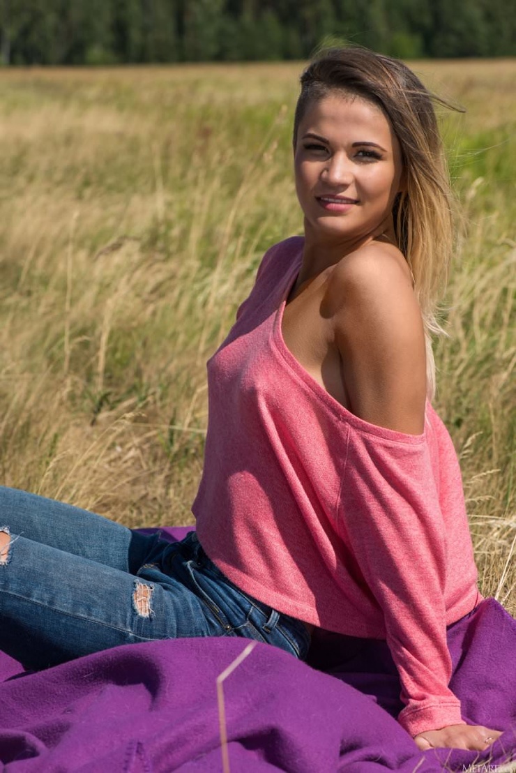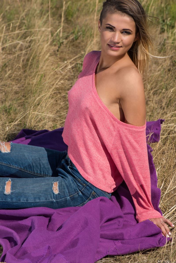 Девочка дня: Бритая развратная телка разделась до гола в поле ❘ фото
